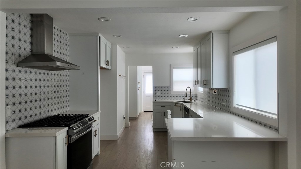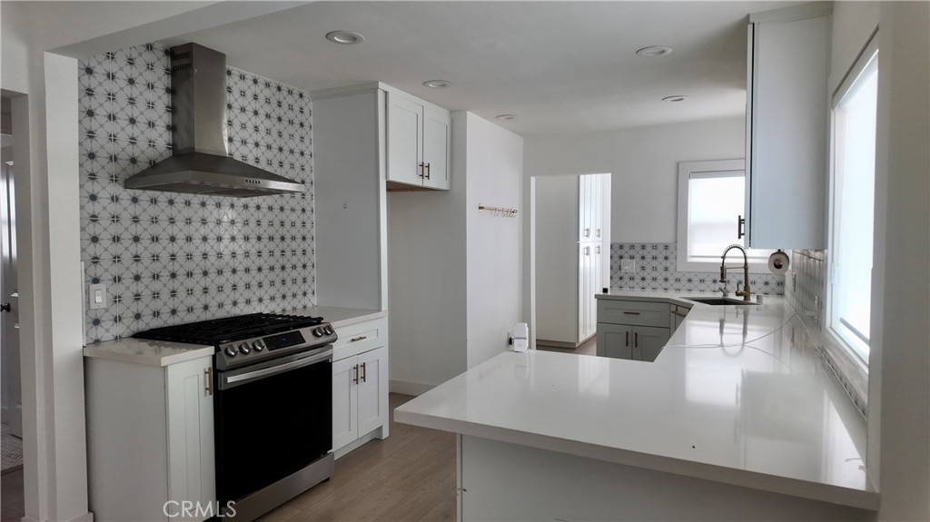 This beautifully upgraded 3-bedroom, 2-bathroom home has been thoughtfully and professionally redesigned from top to bottom. Enjoy modern living with brand new dual-pane windows, recessed lighting, upgraded flooring, and sleek baseboards throughout. The chef's kitchen features a stylish breakfast bar with seating, stainless steel appliances, upgraded stone countertops, custom cabinetry, and a designer tile backsplash--perfect for entertaining or everyday living. Natural light pours in, creating a bright and inviting atmosphere throughout the home. The spacious primary suite includes a luxurious en suite bathroom with high-end modern finishes. The guest bathroom mirrors the same contemporary design and attention to detail. Step outside to a generous backyard, ideal for entertaining or relaxing, plus a convenient two-car garage, and extended driveway. Located close to top dining, shopping, and entertainment, with easy access to the 710 freeway. Just minutes from the Aquarium of the Pacific, Queen Mary, and Belmont Shore--this is Southern California living at its finest!