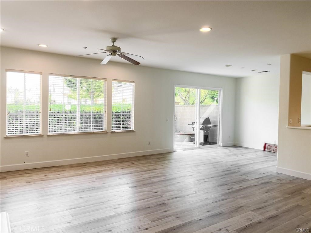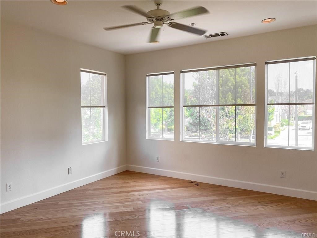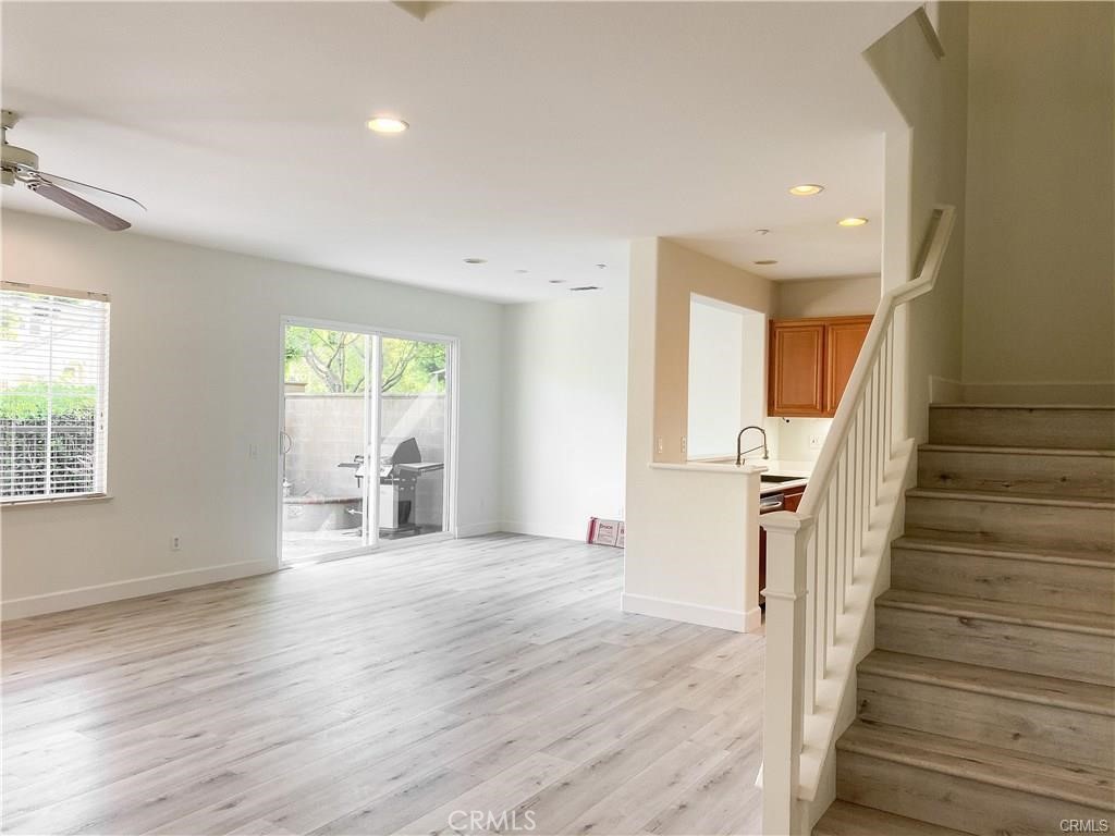 Bright end unit - 3 bedroom and 3 bathroom home in Northpark Square. Upgraded flooring throughout first floor and stairs. Open floor plan living room with sliding doors to a private backyard. No neighbor behind! Kitchen features stainless steel sink and refrigerator! Mainfloor bedroom and bathroom with walk-in shower. Second floor features 2 bedrooms including Master Suite and a large loft. Master Suite features his and hers closets, dual sink vanity, and picture window with book nook sill. Secondary bedroom features en-suite bathroom. First floor laundry room from provides direct access to attached 2 car garage. Home is walking distance to award winning Beckman High School with access to community amenities including, pool and park, walking distance to shopping center with grocery store and local restaurants.